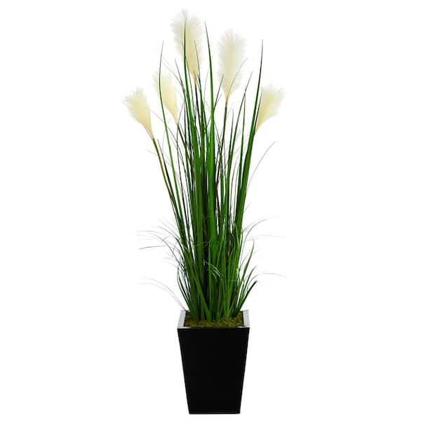 4.5 ft. Wheat Plume Grass Artificial Plant in Black Metal Planter