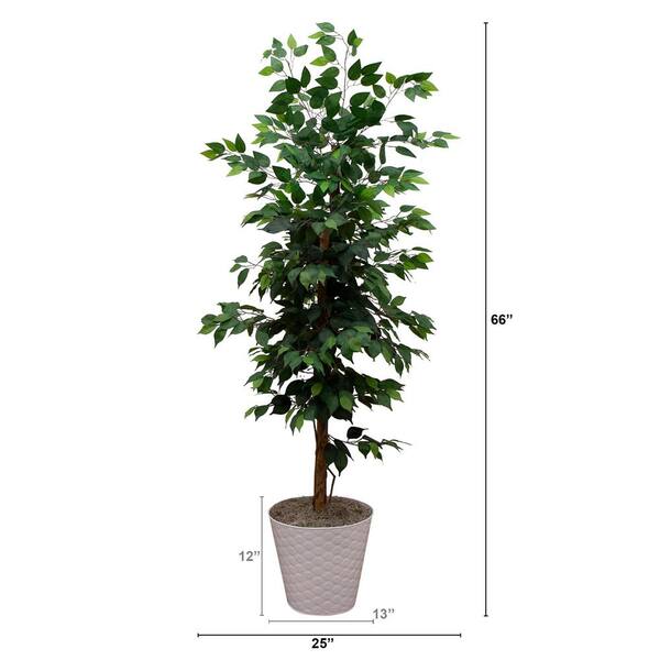 5.5 ft. Artificial Ficus Double Stalk Tree in Hexagon Metal Planter