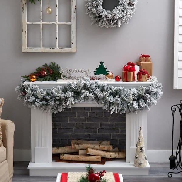 6 ft. Pre-lit LED Flocked Artificial Christmas Garland with Pine Cones and 35 Warm White LED Lights