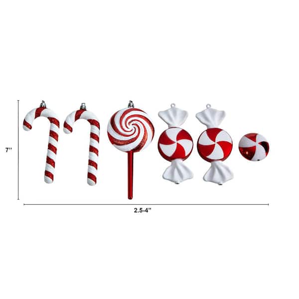 7 in. Shatterproof Assorted Candy Cane Holiday Christmas Deluxe Ornament (6-Pack)