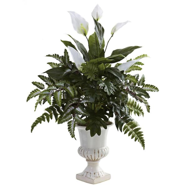 Artificial Mixed Greens and Spathyfillum with Decorative Urn