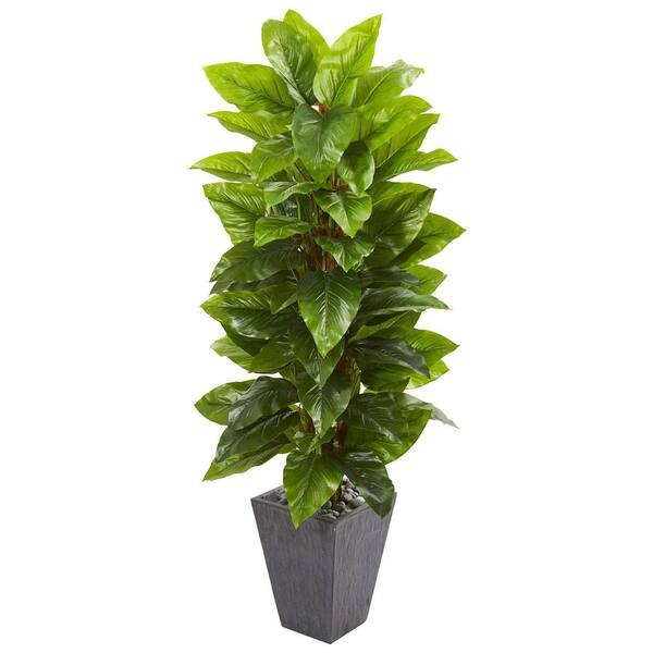 Indoor 5-Ft. Large Leaf Philodendron Artificial Plant in Slate Planter