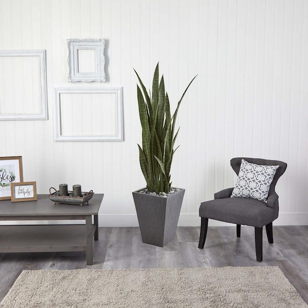 Indoor 57 Sansevieria Artificial Plant in Slate Planter