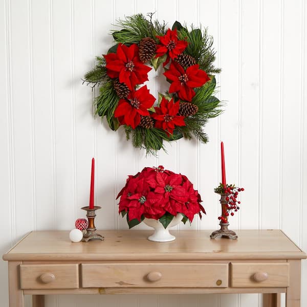 Indoor Poinsettia Artificial Arrangement in Urn