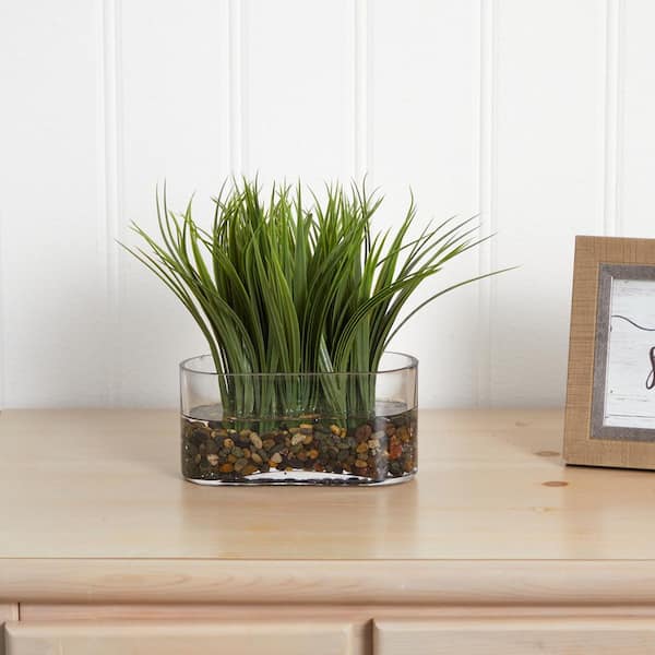 Indoor Vanilla Grass Artificial Plant in Oval Vase