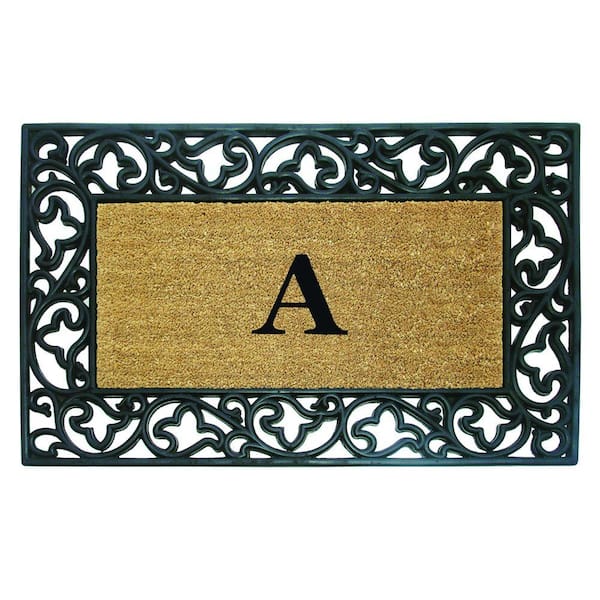 Acanthus Border 30 in. x 48 in. Rubber Coir Monogrammed A Door Mat