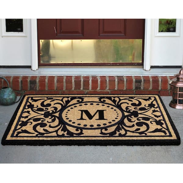 Heavy Duty Black 30 in. x 48 in. Coir Heritage Monogrammed M Indoor Outdoor Door Mat
