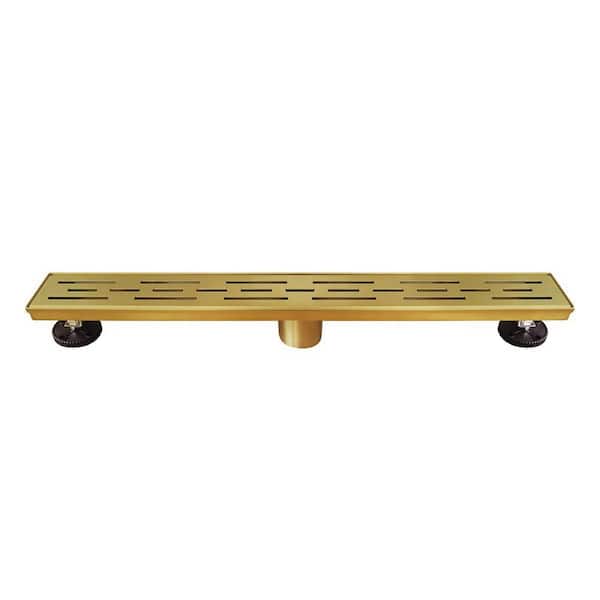 36 in. Stainless Steel Linear Shower Drain with Stripe Pattern Surface, Gold