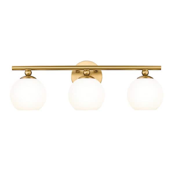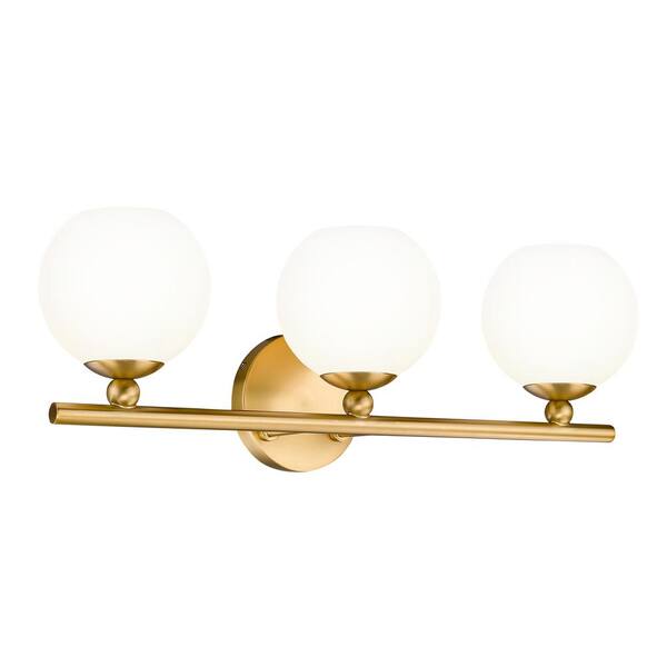 Neoma 21.75 in. 3-Light Modern Gold Vanity Light with Opal Etched Glass Shade with No Bulbs Included