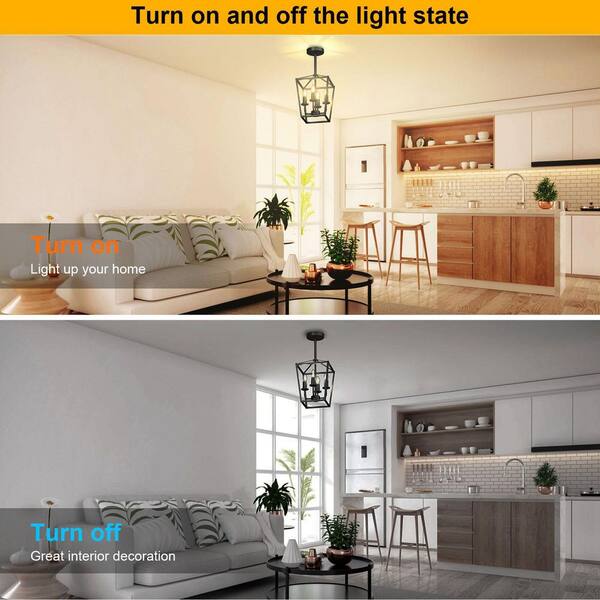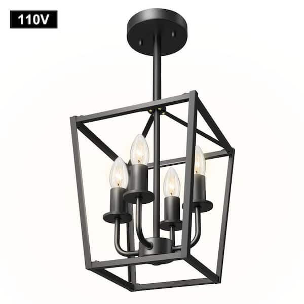 4-Light Black Semi Flush Mount Rustic Ceiling Light