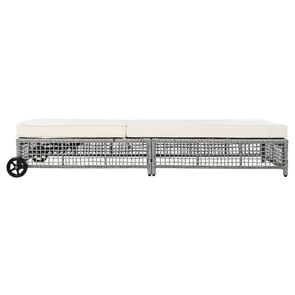 1-Piece Wicker Outdoor Chaise Lounge with Beige Cushions and Wheels