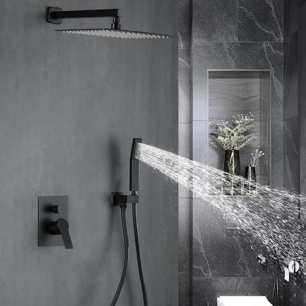 1-Spray Patterns 12 in. Wall Mount Dual Shower Heads in Matte Black