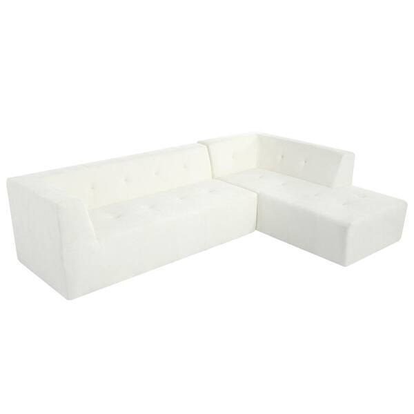 112.2 in. 2-Piece Chenille Upholstered L-Shaped Sectional Sofa in Beige