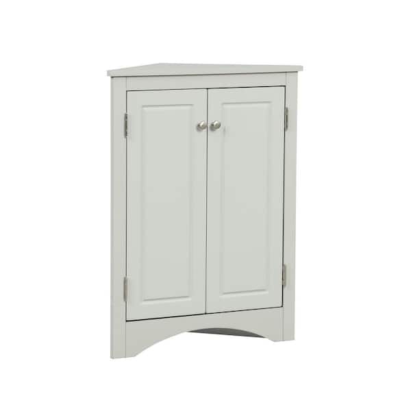 17.2 in. W x 17.2 in. D x 31.5 in. H Gray Corner Linen Cabinet with Adjustable Shelves