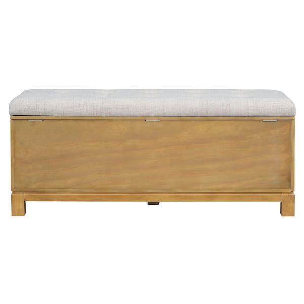 18.1 in. H x 43 in. W Natural Wood Shoe Storage Bench with Removable Cushion