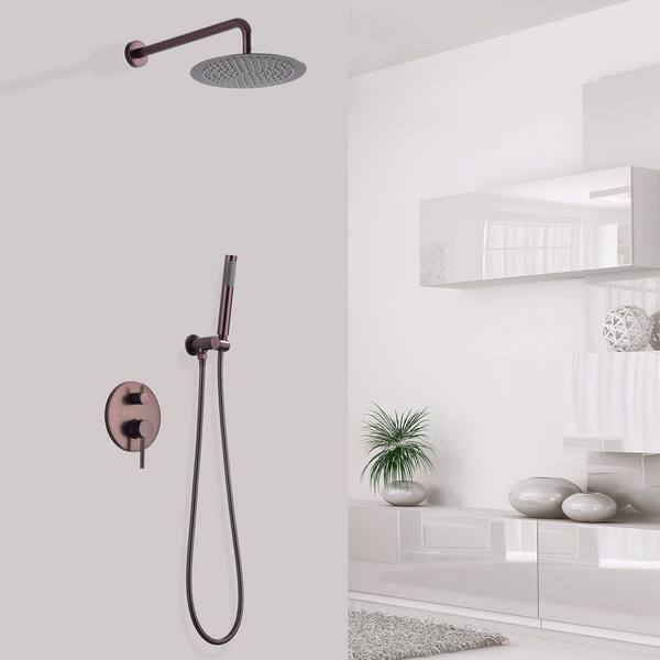 2-Spray Patterns 10 in. Wall Mount Dual Shower Heads in Oil Rubbed Bronze