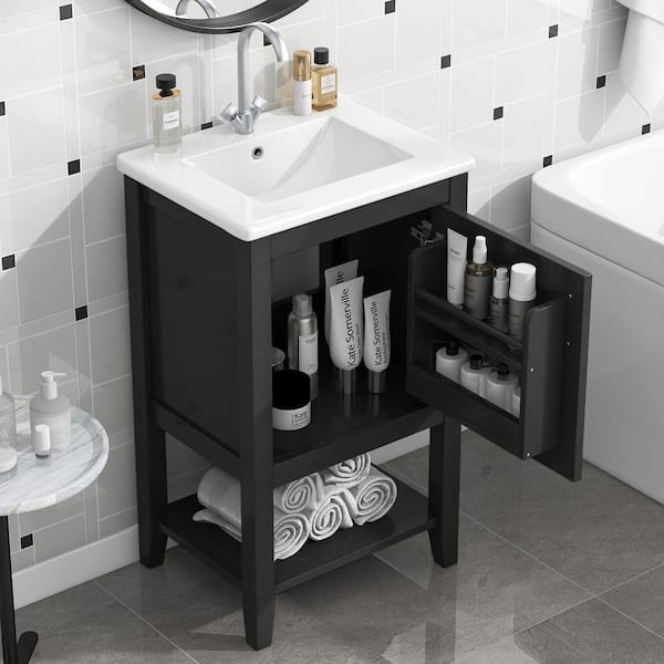 20 in. W x 15 in. D x 33 in. H Freestanding Bath Vanity in Black with White Ceramic Top