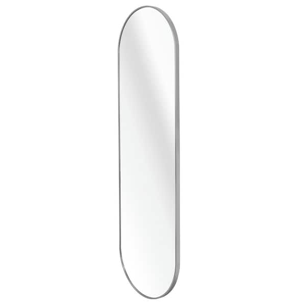 20 in. W x 63 in. H Oval Framed Wall Mounted Bathroom Vanity Mirror in Silver