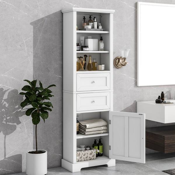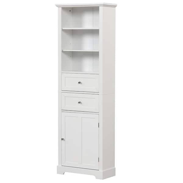 22 in. W x 10 in. D x 67 in. H Freestanding White Tall Linen Cabinet with Drawers and Adjustable Shelf