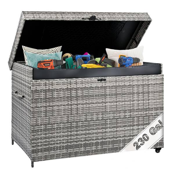 230 Gal. Gary Wicker Patio Deck Box with Lid and Wheels