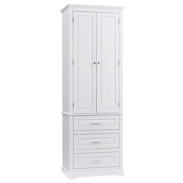 24 in. W x 15.7 in. D x 70 in. H White Wood Linen Cabinet with 3-Drawers