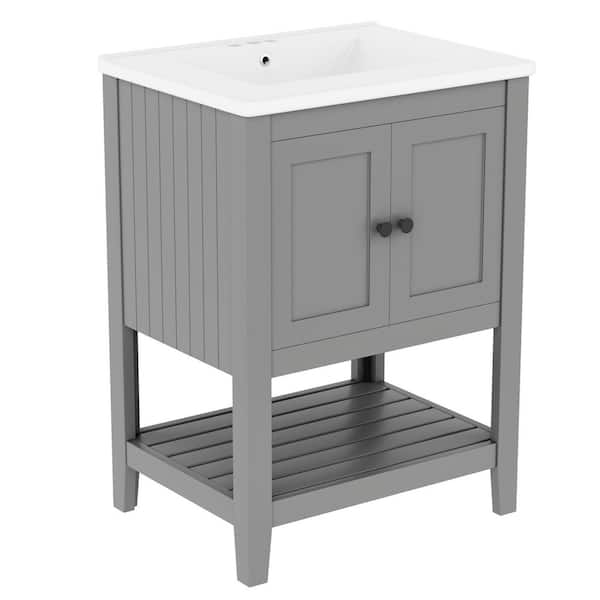 24 in. W x 18.1 in. D x 32.7 in. H Single Sink Freestanding Bath Vanity in Gray with White Ceramic Top