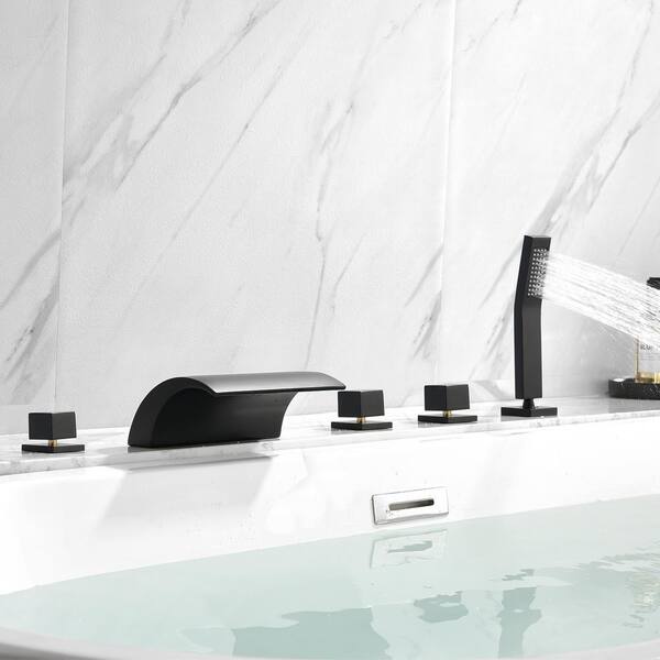 3-Handle Tub-Mount Roman Tub Faucet with Hand Shower in Matte Black