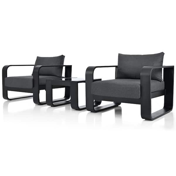 3-Piece Aluminum Frame Patio Conversation Set with Coffee Table and Gray Cushions