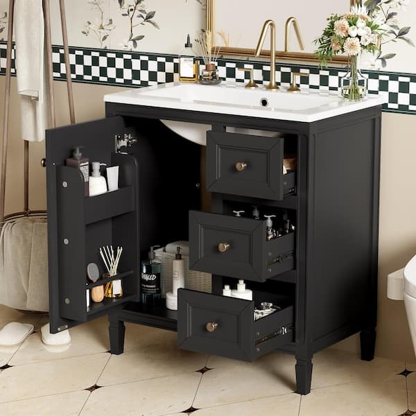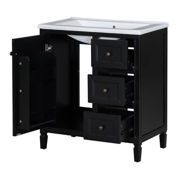 30 in. W Single Sink Freestanding Bath Vanity in Black with White Resin Top