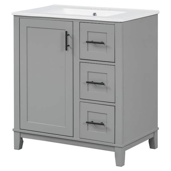 30 in. W x 18.3 in. D x 34 in. H Single Sink Freestanding Bath Vanity in Grey with White Ceramic Top