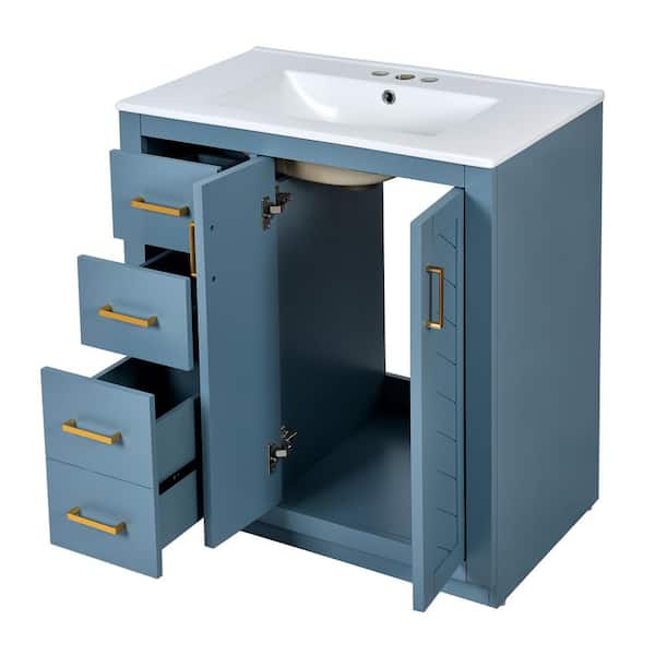 30 in. W x 18.3 in. D x 34 in. H Single Sink Freestanding Bath Vanity in Indigo with White Ceramic Top