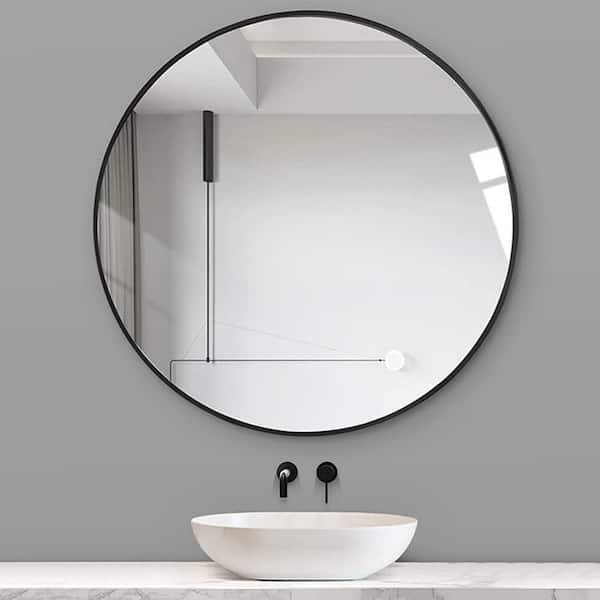 30 in. W x 30 in. H Black Round Brushed Aluminum Frame Wall Mirror