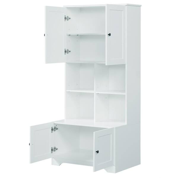 31 in. W x 12 in. D x 67 in. H White Storage Linen Cabinet with 4-Doors and Adjustable Shelves
