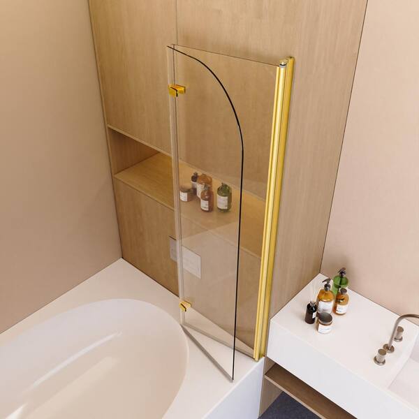 34 in. W x 58 in. H Folding Pivot Frameless Bathtub Door in Brushed Gold with 1/4 in. (6mm) Thick Tempered Glass