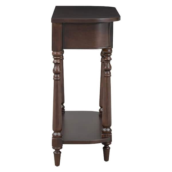 36 in. Espresso Oval Wood Console Table with Top Drawer and Open Shelf