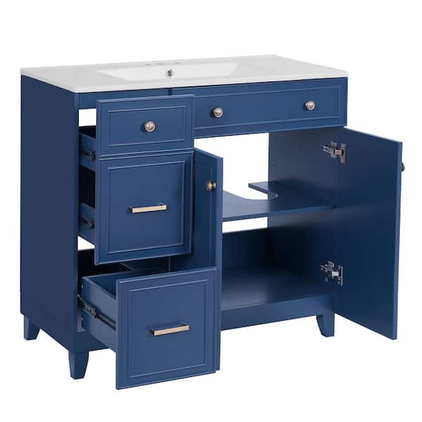 36 in. W x 18 in. D x 34.3 in. H Single Sink Freestanding Bath Vanity in Navy Blue with White Resin Top