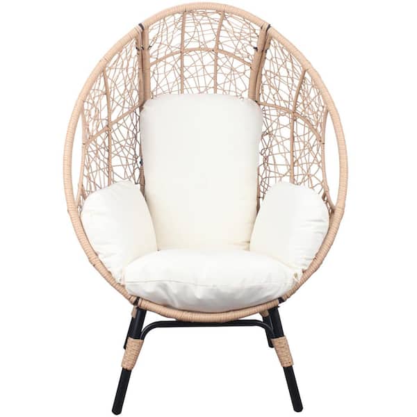 37.4 in. W 1-Person PE Wicker Egg Chair with Natural Color Rattan Beige Cushion