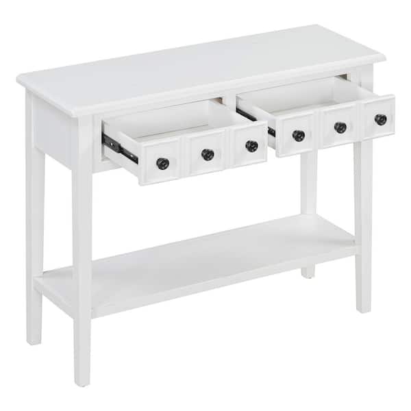 38.2 in. White Rectangle Wood Console Table with 2 Drawers and Open Lower Shelf