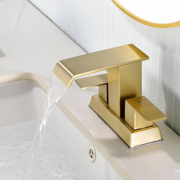 4 in. Centerset Double Handle Bathroom Faucet with Pop-Up Drain in Brushed Gold