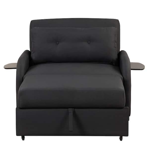 41.5 in. Black Line Fabric Pull Out Sofa Bed with 2 Wing Table and USB Charge