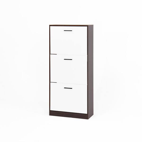 47.2 in. H x 21.3 in. W x 9.4 in. D Walnut Shoe Storage Cabinet with 3 White Panel Flip Drawers