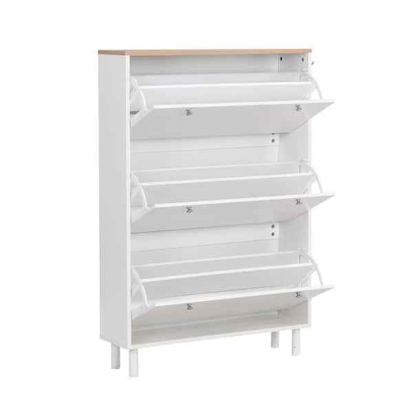 47.6 in. H x 31.5 in. W x 9.4 in. D White Free Standing Shoe Storage Cabinet with 3-Flip Drawers and 3 Hooks