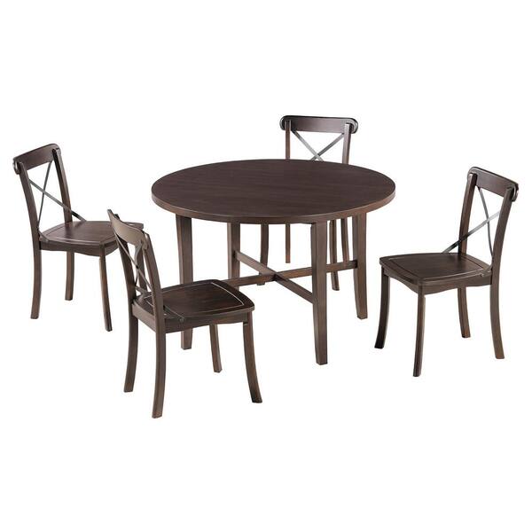 5-Piece Espresso Wood Top Round Dining Set with 4 X-Shaped Backrest Chairs