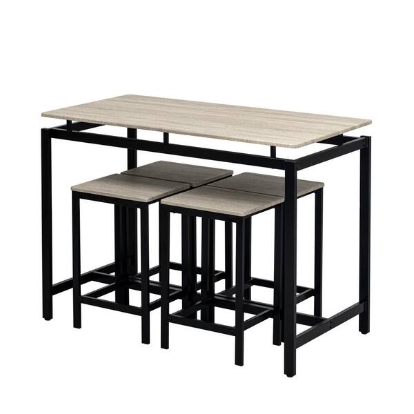 5-Piece Oak MDF Top Compact Bar Table Set Seats 4