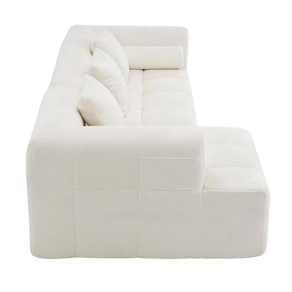 50.4 in. W Chenille Modular Couch Sectional Sofa in Beige with 2-Side Pockets