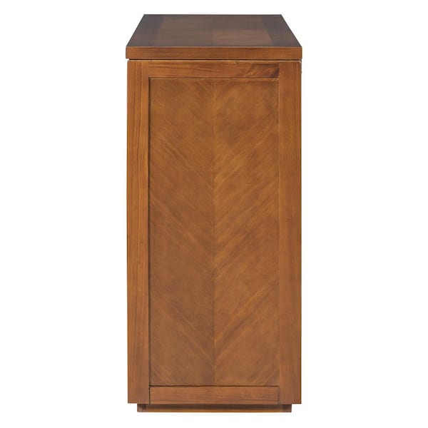 55 in. L Honey Rectangle MDF Console Table with Storage Drawers and Open Shelf