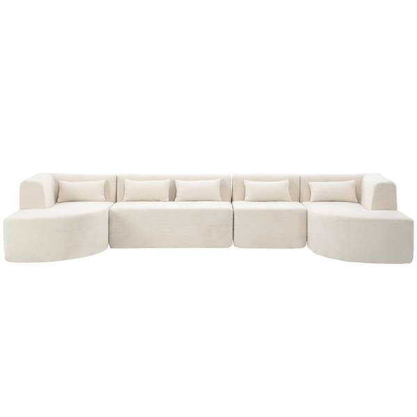 57.5 in. Boucle Fabric Free-Combined Sectional Sofa in Beige with 5 Pillows