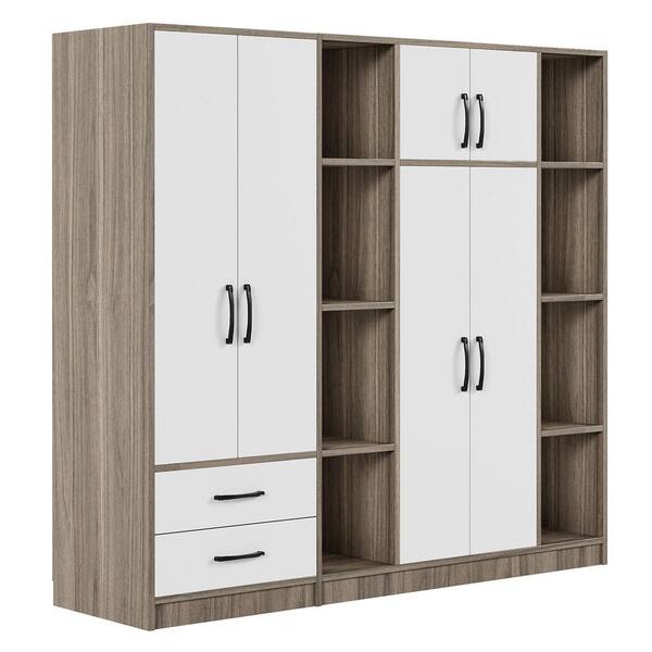 6-Doors Natural 70.9 in. Wardrobe Armoire Closet with Shelves and 2 Drawers