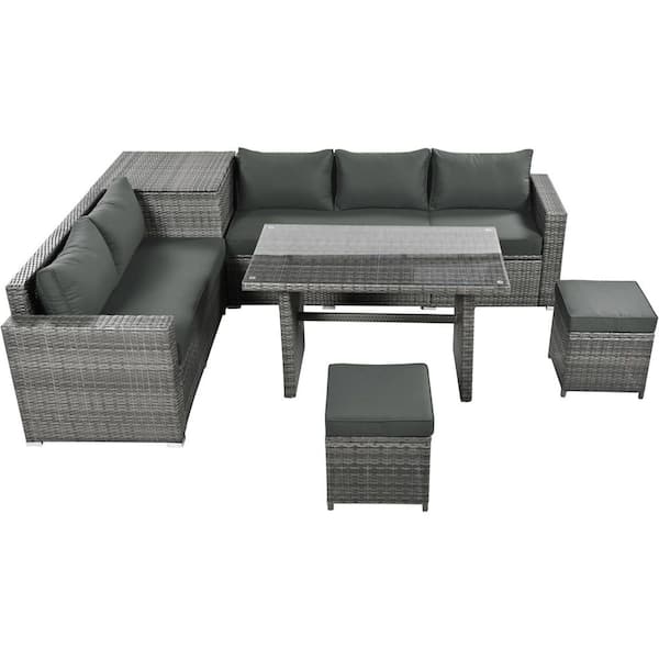 6 Pieces Grey Wicker Outdoor Sectional Set Sofa Set with Grey Cushions