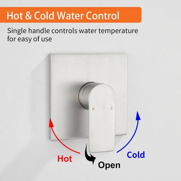 6-Spray Patterns 5.07 in. Wall Mount Fixed Shower Head with Diverter in Brushed Silver